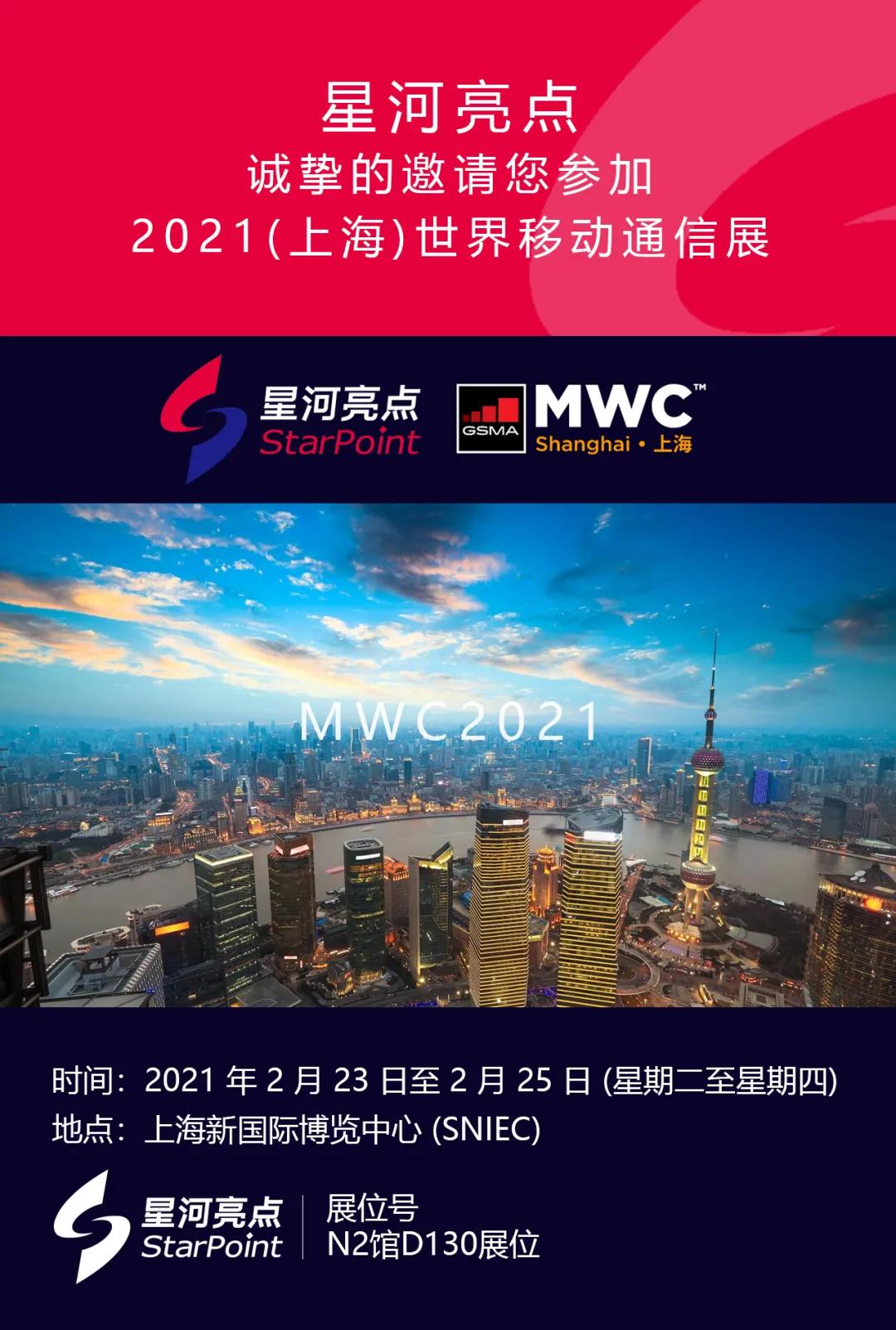 - 舉辦日期:2021 MWC 上海將于2021 年 2 月 23 日至 2 月 25 日 (星期二至星期四) 舉行。